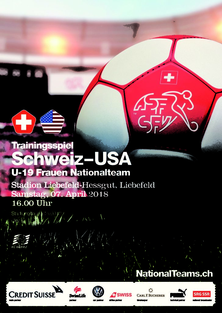 Im kommenden Zusammenzug bestreiten wir mit dem U19-Frauennationalteam zwei Testspiele gegen die USA und freuen uns über leidenschaftliche Unterstützung! 07/04/2018 um 1600 Uhr in Köniz, Stadion Liebefeld: 20180407 SFV Matchplakat SUI-USA FNTU19 10/04/2018 um 1300 Uhr in Biel, Tissot Arena: 20180410 SFV Matchplakat SUI-USA FNTU19
